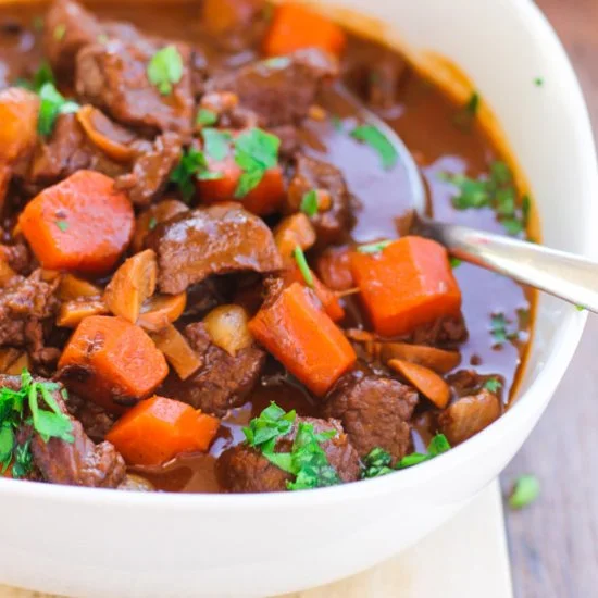 This is a deeply flavoured, warming winter dish. Inspired by the flavours of Morocco, this dish combines sufficient complex carbohydrates and fibre with protein and vegetables to make a balanced, satisfying meal. It is also iron-rich with heme iron from the beef and non-heme iron from the apricots.